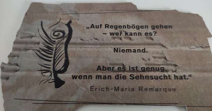 Ich habe eine gestaltete Pappe geschenkt bekommen, die ich weiter verschenken darf – ein Symbol für Verbindung, Gemeinschaft und dafür, dass Stärke sich vermehrt, wenn man sie teilt.